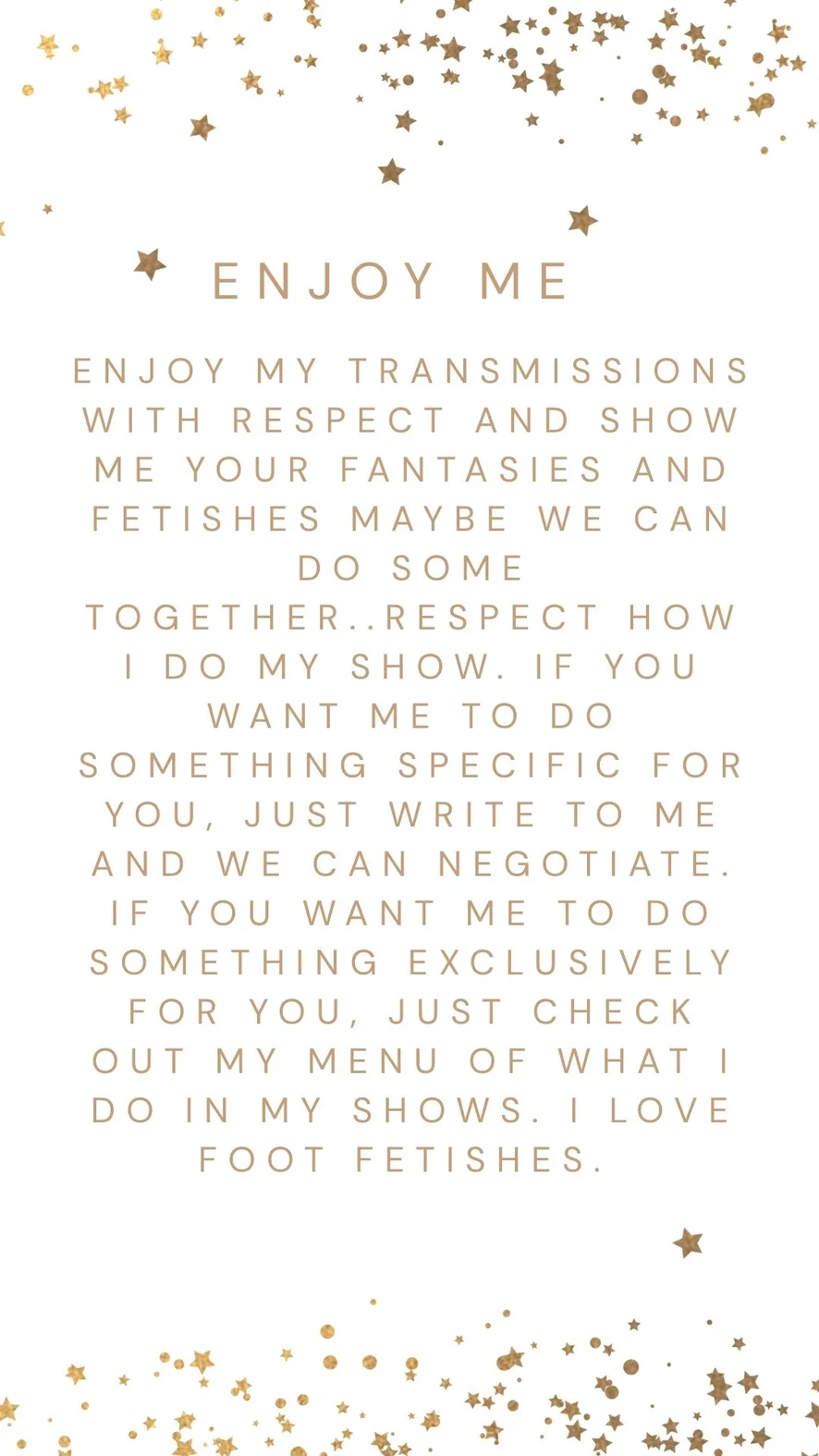 Mistress, Valutazione del cazzo, Bustino, Cosplay, Istruzioni per sborrare, Ufficio, Nylon, Sculacciate, Ballo erotico, Zoccolo di cammello, Ditalino, Dildo o Vibratore, Linguaggio esplicito, Spogliarello, Feticismo dei piedi, Umiliazione, Giochi di ruolo, Giocattoli erotici, Masturbazione, Donna sopra, Twerk, Topless, Tacchi, Squirt, Spettacolo con olio, Hardcore